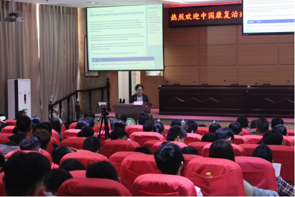 次日,敖丽娟一行在黄金校区图书馆报告厅讲学。敖丽娟作题为《世界物理治疗师联盟(WPCT)最低教育标准认证经验》的讲座。介绍了认证申请流程、师资队伍建设、临床实习安排、课程内容建设、实验室建设与使用等,她指出将为我校康复医学专业人才培养国际化提供资源并牵线搭桥。王蕾分享了昆明医科大学康复物理治疗、康复作业课程设计等内容。现场气氛热烈,互动多,师生纷纷表示收获颇丰。