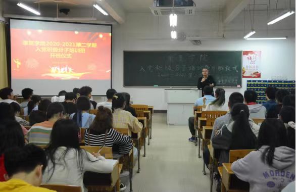 陈建文代表学院党委热烈欢迎全体入党积极分子加入,希望同学们端正入党动机、珍惜学习机会、做好示范表率、遵守三个文明,不忘历史、不忘初心,知史爱党、知史爱国,以良好的精神面貌迎接建党一百周年和建校八十周年。雷飘介绍了本次培训班的学习安排和具体要求,要求同学们主动参与到党课学习中,切实提升自己的理论水平和思想觉悟。