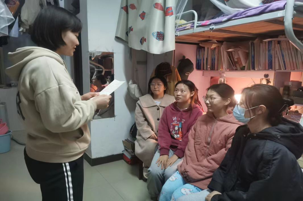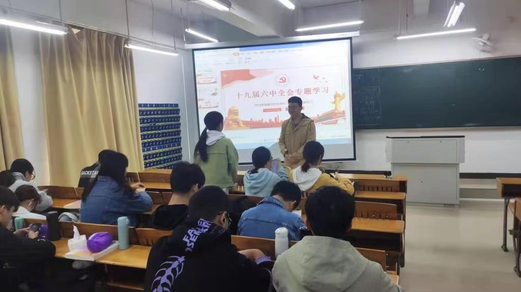 8名党史宣讲团成员先后深入48个学生宿舍开展党的十九届六中全会精神进宿舍、进班级活动,结合自身学习体会从全会召开的时间、地点、内容、意义和时代赋予青年的使命与责任等方面进行交流分享,在全院营造了全会精神人人学、人人讲、人人践行的浓厚氛围。