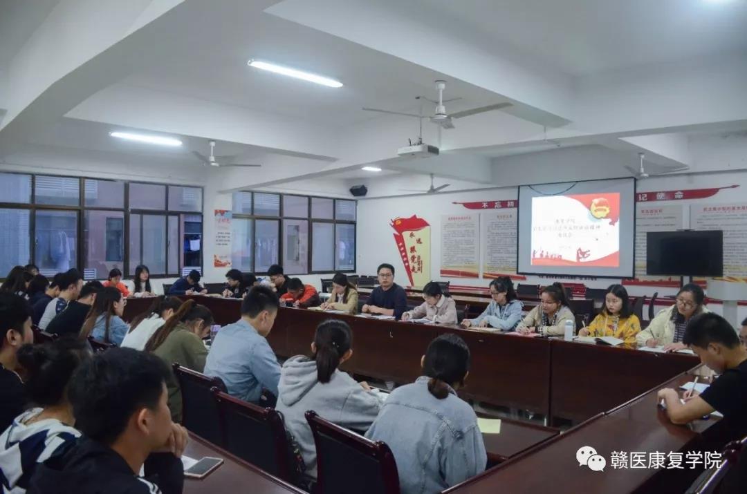 5月8日晚上,康复学院在学生宿舍3、4栋党员活动室召开师生座谈会,就习近平总书记在纪念五四运动100周年大会上的讲话进行专题学习。本次会议由该院团委书记袁阳康主持,党委副书记叶贞丽、学工办老师以及全体学生干部、学生党员参加。