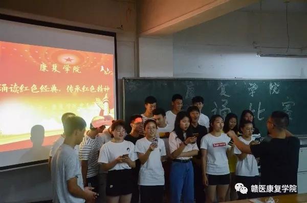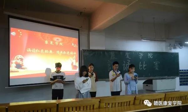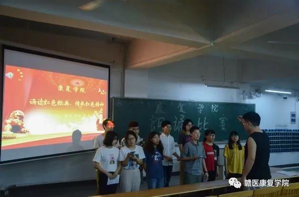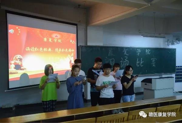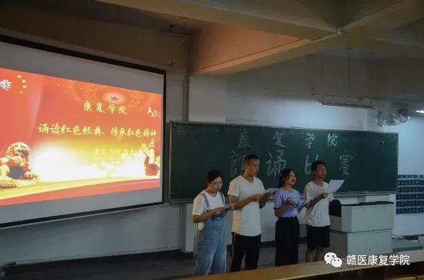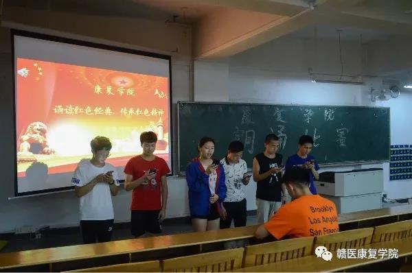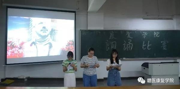 康复学院17级和18级各班都为诵读活动准备了精彩的节目,有17级康复治疗一班的朗诵《党旗颂》,17级康复治疗二班的朗诵《不朽》,也有17级运动人体科学班的朗诵加合唱节目《红色追忆》、18级康复治疗二班的朗诵加情景剧节目《缅怀“红色华佗”傅连暲将军》等,各个班级都展现各班风采,希望各个班级能够在比赛中表现更好,取得优异的成绩。