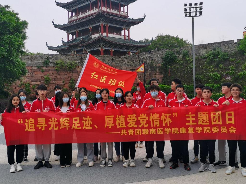 4月18日,康复学院红医班级在赣州市区开展“追寻光辉足迹,厚植爱党情怀”主题团日活动。该院团委委员周伟、2019级康复治疗学2班25名学生团员代表参与。