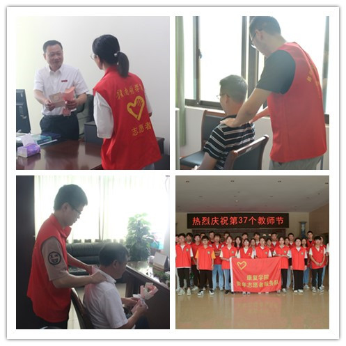 学院团委副书记雷飘带领着一组学生志愿者们来到黄金校区行政楼,为教师送上节日的祝福和鲜花,并提供专业的康复手法服务,积极宣传、科普常见亚健康症状的缓解知识,受到广大教师的好评。