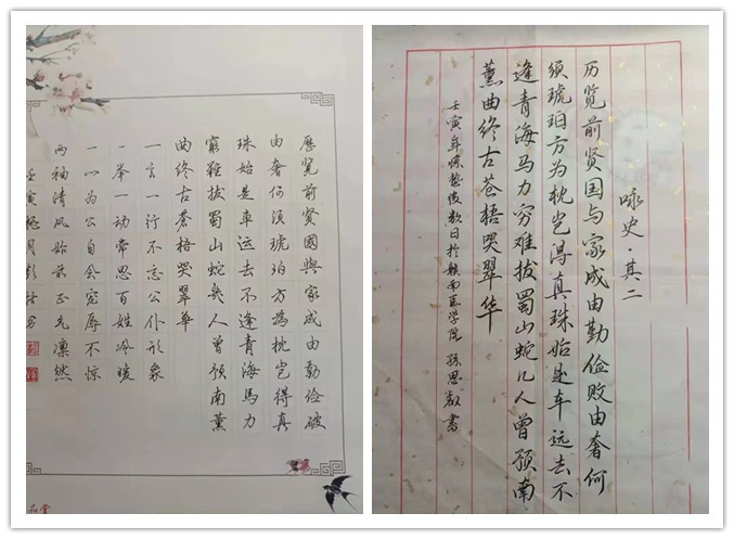 此外,该院团委以“清风妙笔书廉心”为主题开展廉洁文化教育书法比赛,鼓励团员青年在艺术创作中增强修身律己、清正廉洁的意识。截至目前,收集到30余幅书法作品,其中2019级康复治疗学1班彭恬作品荣获一等奖。