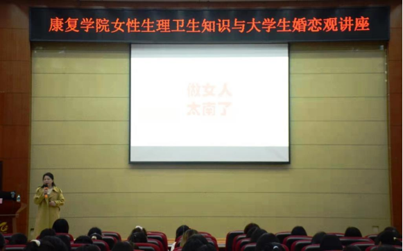 3月7日晚,康复学院在黄金校区开展女性生理卫生知识与大学生婚恋观讲座。该院党委副书记叶贞丽主讲,学工办老师及近400名在校女生共同参与。