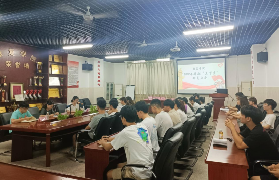 6月24日晚,康复学院在黄金校区康复楼208会议室召开2022年暑期“三下乡”社会实践动员大会。该院党委副书记叶贞丽、学工办老师以及全体青年志愿者参加。
