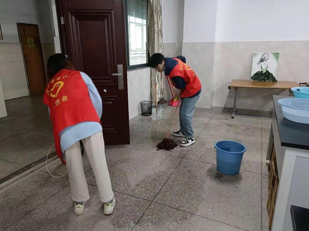 在辅导员的带领下,该院校园护绿志愿服务队拿着劳动工具对第五实验楼旁的荒地进行开垦与翻整,对荒地上的杂草进行一一清除。同时,在康复楼开展卫生大扫除,对大楼内的走廊、教室、卫生间、楼梯逐一进行清扫,对楼下的树木做了翻地、浇水。