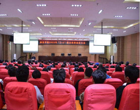为进一步提升人才培养质量,顺应社会发展对人才素养的变化,培养学生的实践能力,提升学生的综合素质与就业竞争力,3月15日晚,康复学院在黄金校区图书馆报告厅举行2023年“2+2”创新联合培养动员大会。康复学院党委副书记、院长温优良博士、第一附属医院康复医学科主任唐卫东、第一附属医院黄金院区康复科负责人钟燕彪博士、第一附属医院康复科治疗师长李海及康复治疗专业教研室全体教师,2021级、2022级康复治疗学专业各班班主任,学院研究生代表以及全体康复治疗专业学生共200余人参加。