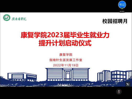 为提高学生对当前就业形势的认识和行业发展的了解,增强毕业生的核心竞争力和主动就业意识。11月19日晚,康复学院开展2023届毕业生就业力提升计划第一期活动,邀请全体毕业生走进线上会议室。学院党委副书记叶贞丽、年级辅导员、就业联络员以及2023届全体毕业生共240余人参加,会议由就业联络员主持。