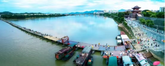 赣州是我国当今保存最完好的宋代古城之一,被专家学者称为“宋城博物馆”,故有“江南宋城”之誉。这里有“江南第一石窟”——通天岩,有全国唯一的宋代铭文砖城墙,有沿用了近900年、由100条木舟用铁索连环而成的古代水上交通要道——古浮桥,有中国至今仍在使用的古代地下排水系统——福寿沟,有中国八景文化的发祥地八境台、南宋词人辛弃疾留下千古绝唱《菩萨蛮·书江西造口壁》的郁孤台等。