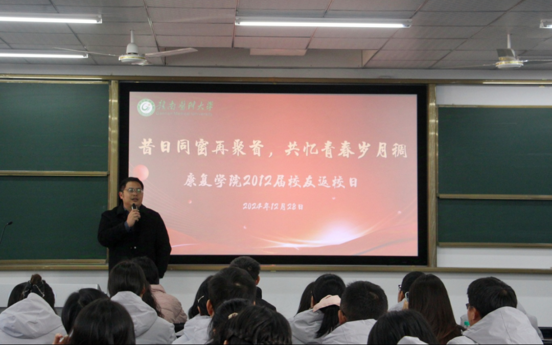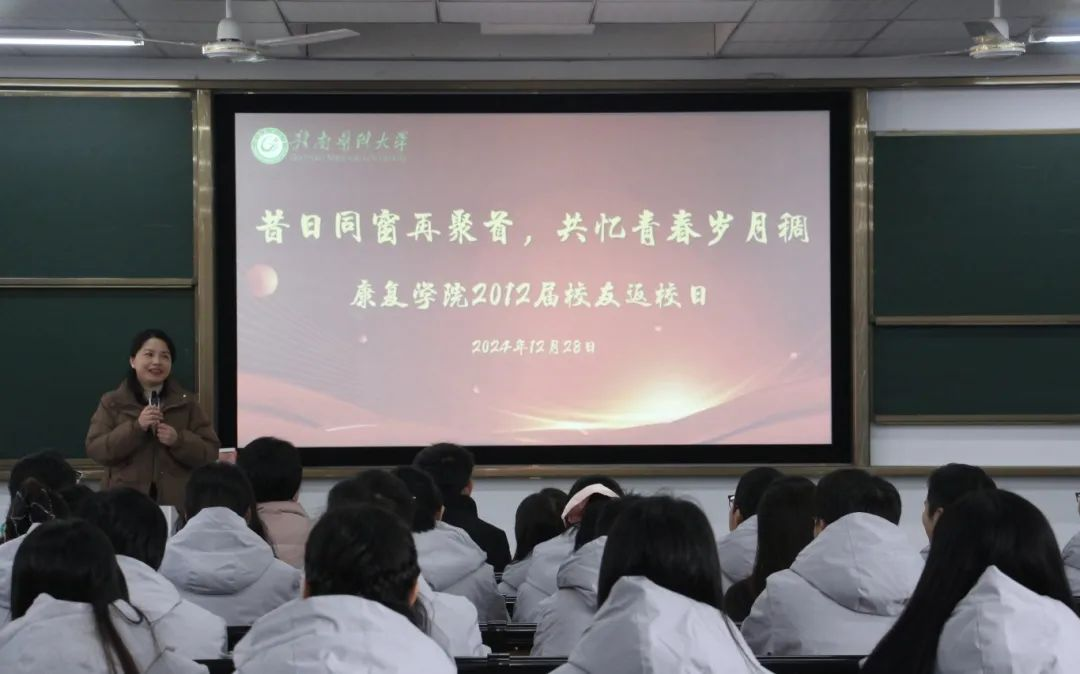 2012届辅导员、学工处副处长袁阳康,康复教研室主任任彩玲、实验室主任李振海深情回忆了校友们在赣医大求学时的点点滴滴,对他们的成长深感欣慰,同时希望大家能常回母校看看。