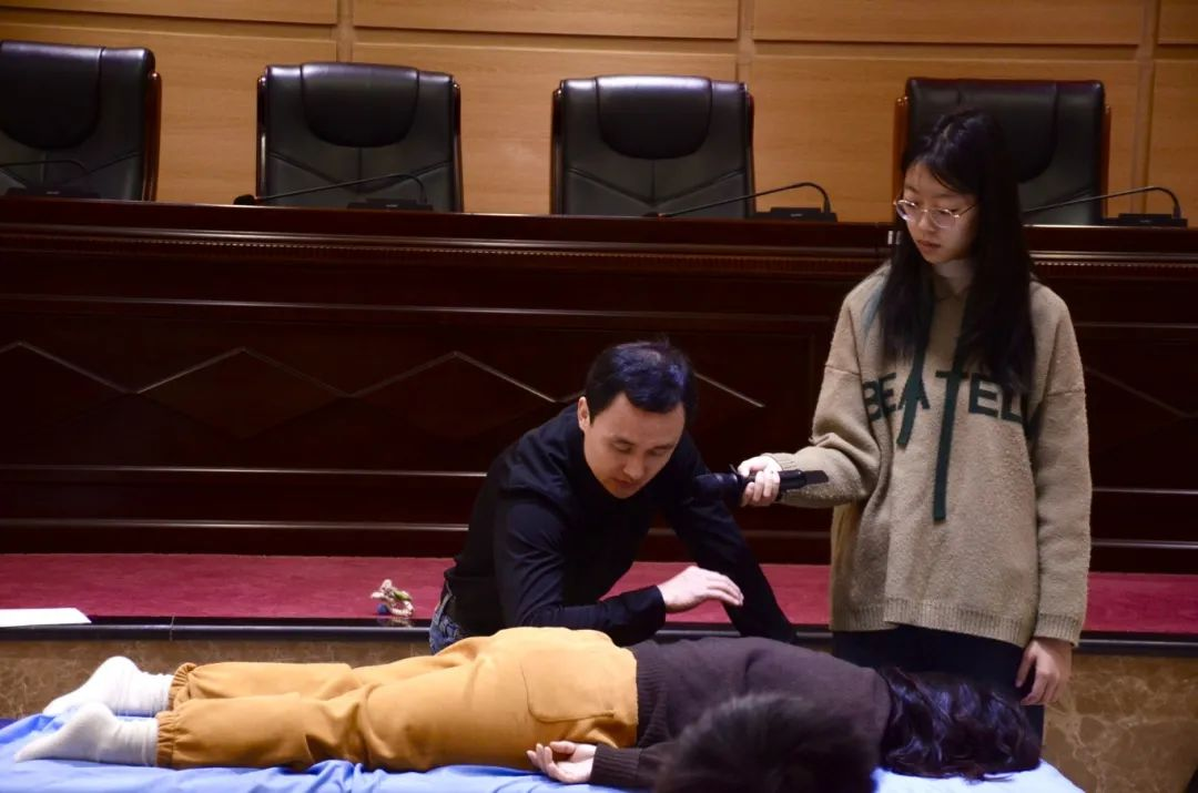 在演示环节,李太良以丰富的临床经验和深厚的专业知识,对刘慧老师进行现场评估与治疗,让在场师生直观感受到产后康复的实际应用与魅力。
