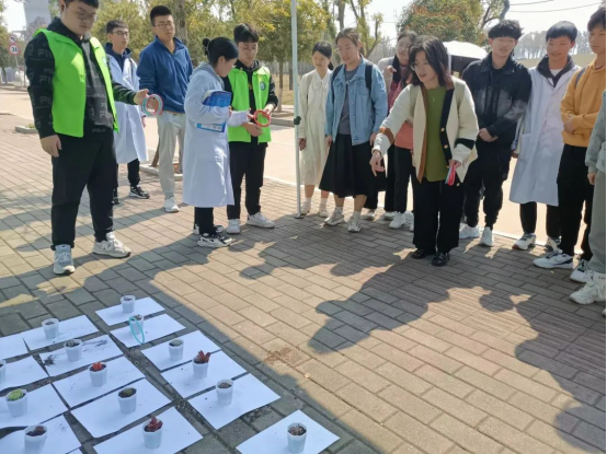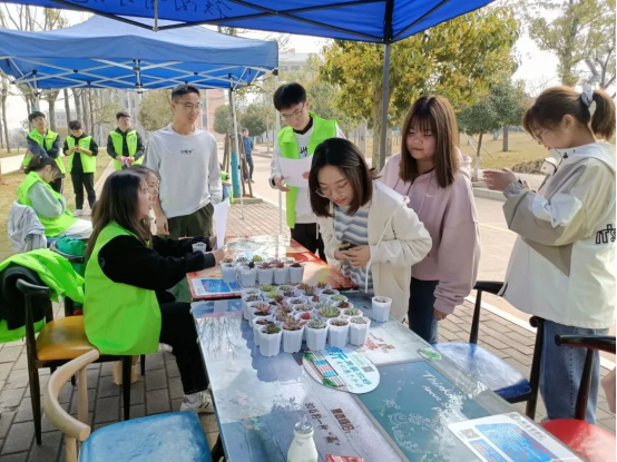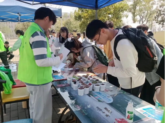 活动中,志愿者们热情邀请赣医学子参与活动,参与者们可通过竞答和套圈两种方式获得盆栽及各种植物相关小礼品。