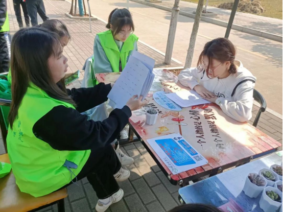 阳春三月,草木秀润。为帮助同学们了解更多环保知识、增强环保意识,康复学院青年志愿者服务队于2022年3月12日在3、4栋学生宿舍楼前开展以“绿色校园,你我同行”为主题的植树节有奖竞答活动。