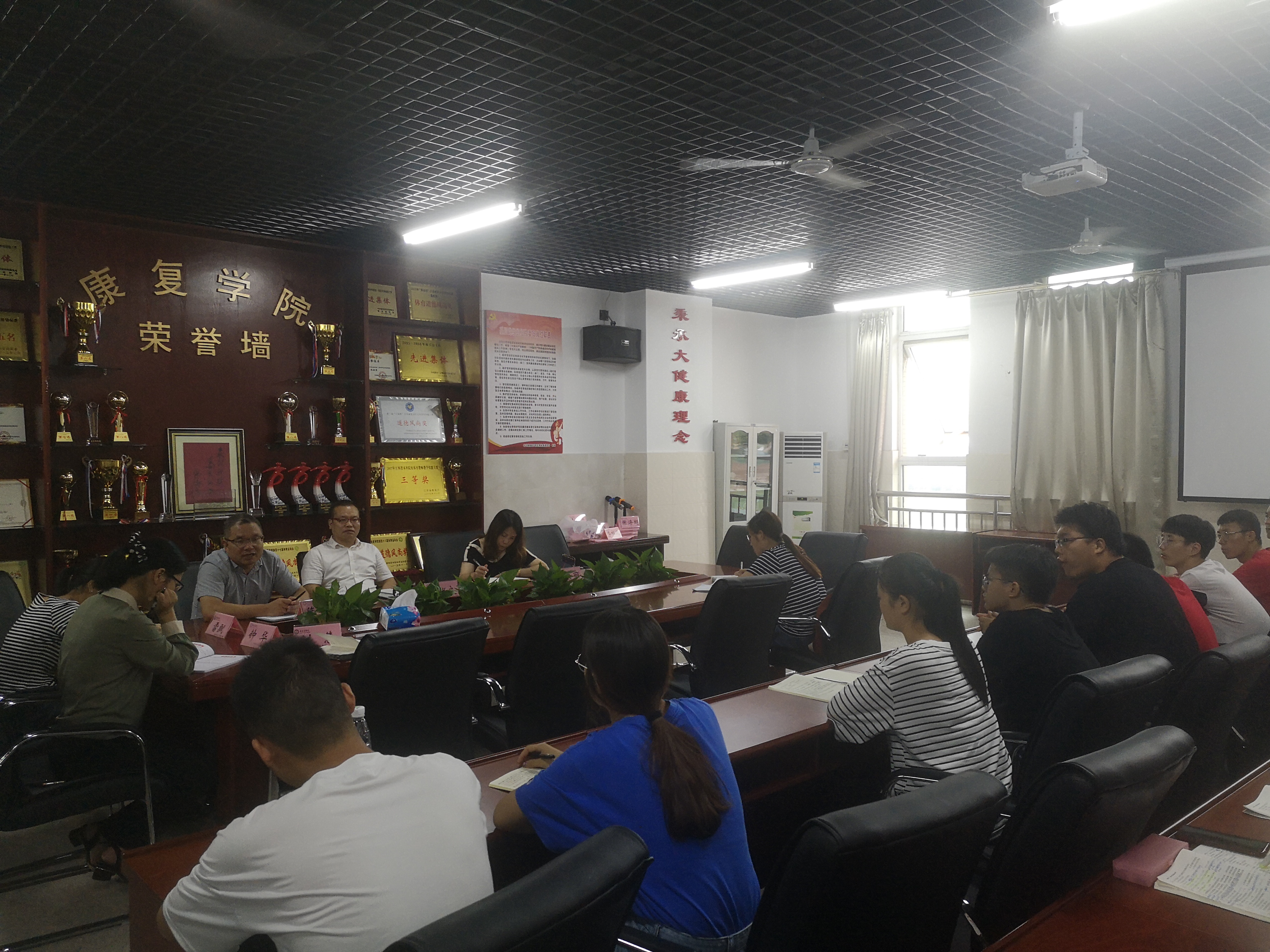 6月24日,在黄金校区召开了康复学院2018-2019学年第二学期诚信考试教育专题座谈会。本次会议由学院党委书记陈建文主持,该院副院长温优良、党委副书记叶贞丽出席,学院教学管理教师、学生工作管理干部及各年级学生代表参会。