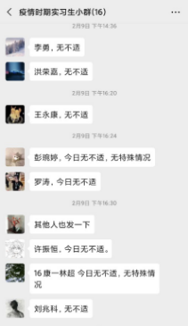 “4”,即筑牢四道防线。学生每天在“完美校园”平台完成网上“每日一报”;辅导员在完成每日逐一排查之后,向学院学生工作分管领导完成疫情情况每日汇报;班长每日向辅导员完成班级疫情情况汇报每日打卡;建立湖北籍学生和实习生等重点关注学生的微信群,随时关注学生动态,以此筑牢疫情防控四道防线。
