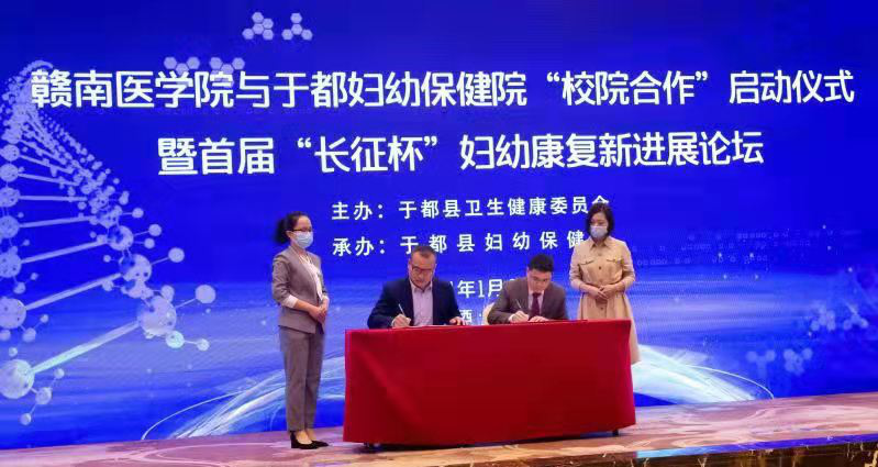 1月26日上午,我校与于都县妇保院签订“校院合作”协议,并举办首届“长征杯”妇幼康复新进展论坛。