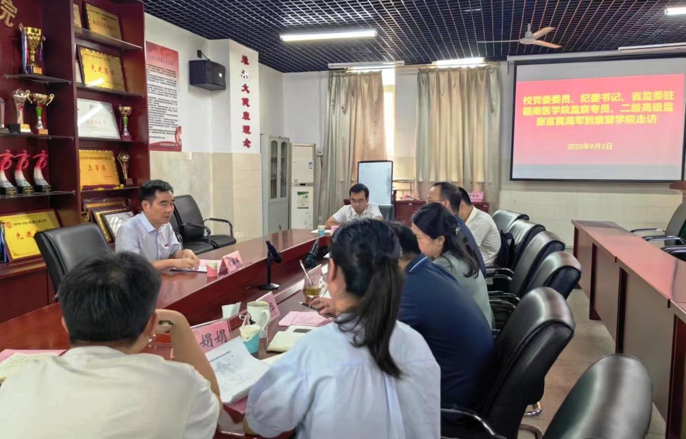 9月3日,学校党委委员、纪委书记、省监委驻赣南医学院监察专员、二级高级监察官黄海军到康复学院调研秋季开学准备工作,以及其所联系的康复学院第二党支部党建工作。