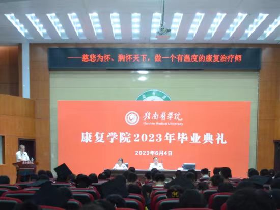 6月4日下午,赣南医学院康复学院在黄金校区多功能会议厅举行2023年毕业典礼,学院党委书记曾新华、学院院长温优良、全体教师以及全体研究生毕业生、本科生毕业生参加,典礼由学院党委副书记叶贞丽主持。