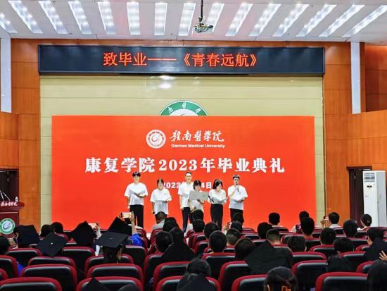教师代表、2019级运动康复班班主任李甜回忆了和班级同学共同成长的经历。研究生毕业生代表王瑞、本科生毕业生代表朱小芳先后发言,感恩学校、学院和老师们的培养。在校生代表以致毕业生的散文诗朗诵——《青春远航》,向全体毕业生送上了美好的祝福。研究生代表苏广俊带领全体毕业生重温了医学生誓词。