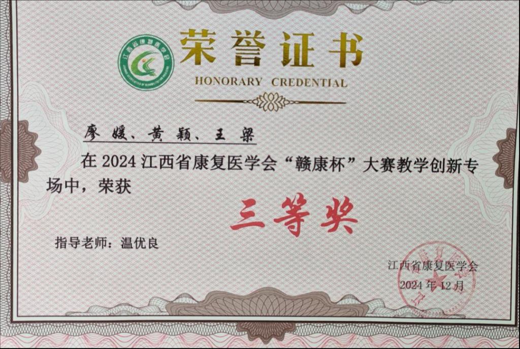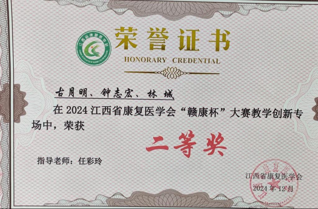 12月6-8日,江西省康复医学会学术年会暨赣鄱国际康复论坛在南昌举办,同期举行“赣康杯”教学创新大赛、智能康复创新创业大赛及康复治疗病例大赛。我校康复学院师生在200多个作品中经过激烈竞争,喜获二等奖1项,三等奖1项,优秀奖4项。