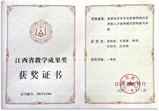 一系列标志性成果随之涌现:一是育人质量显著提升。构建了“三引+三进+三创”的赣医康复育人模式,医康养融合应用型人才培养获江西省第十七批高等教育(本科层次)教学成果奖一等奖;率先全面推进“2+2”求新班创新型人才培养,打造联合培养样板;学生荣获国家级、省级专业技能竞赛奖项37项;连续五年以“一号文件”推进就业工作,成效显著。二是师资队伍建设加强。专任教师博士化率不断提升,实现国家级教指委成员“零的突破”,多名教师在省级以上学会任职,荣获全国物理治疗科普大赛一等奖1项、全国第九届假肢矫形制作大赛一等奖1项、江西省康复医学会教学创新大赛比赛一等奖2项、二等奖1项、三等奖1项。三是学科科研跨越发展。康复治疗学获批省一流专业;成功立项国家自然科学基金等项目;共建智慧康养产业学院,开启产教融合新篇章。四是红医文化深入人心。“红医杯”微马跑等品牌活动参与逾万人次,“体医融合”特色鲜明,师生在多项省级体育赛事中斩金夺银,展现出昂扬风貌。