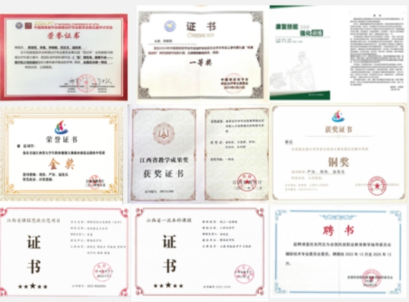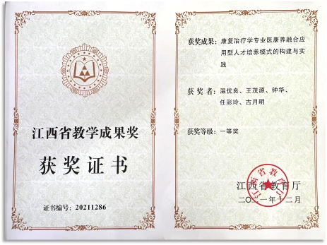 医康养融合应用型人才培养获得江西省第十七批高等教育(本科层次)教学成果奖一等奖1项、江西省教学成果奖青年项目(研究生教育类)2项。